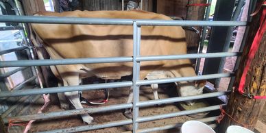 A milking parlor can be super fancy or super simple. The key with milking cows or goats, is cleanliness, proper milk handling, and quick cooling.